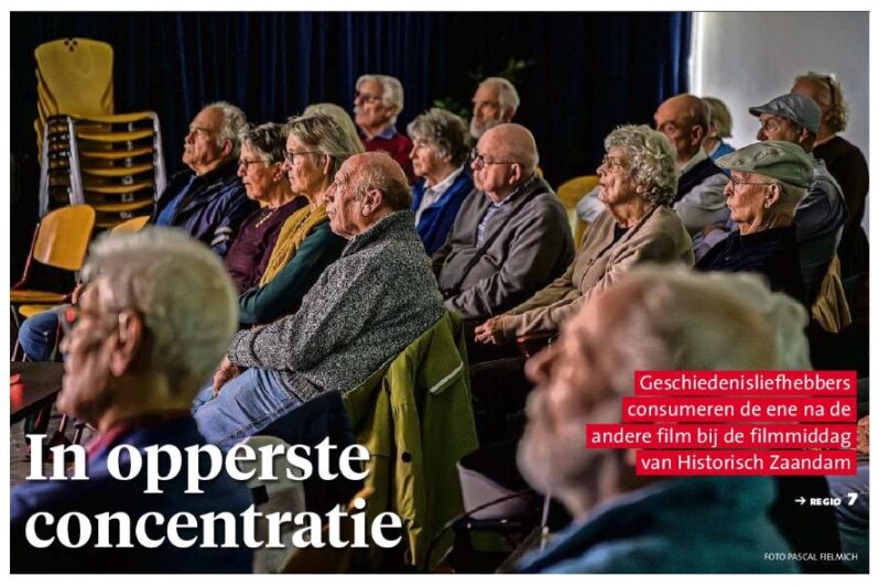 In het Noordhollands Dagblad van vrijdag 31 oktober werd ruim aandacht geschonken aan de filmmiddag van Historisch Zaandam van maandag de 27e. “Fans van geschiedenis vreten Zaanse films’ schreef journalist Rob Swart. Met een foto op de voorpagina en een pagina in het regio katern.