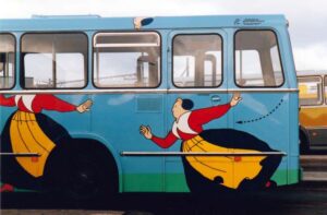 Toen deze bus van de ENHABO in 1984 door de Zaanstreek reed, zullen velen zich hebben afgevraagd wat de voorstelling betekende.