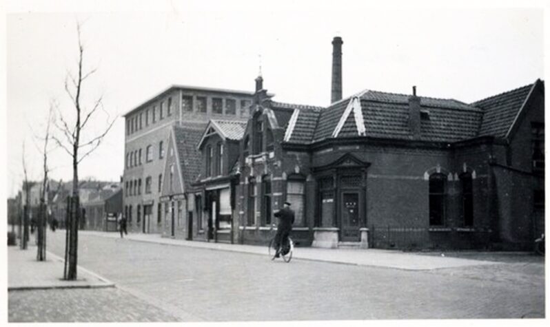Westzijde, 1938. Het grote gebouw is de Ouwelfabriek op nummer 300. Op 298 zat molenmaker Boerendans, 296 visserman Bakker, 294 café Plekenpol, 292 de slagerij van weduwe Hoek en op 290 de bakkerij van Noord. Alle panden rechts van de ENSOF zijn gesloopt voor de afrit van de Bernhardbrug. Verder lezen
