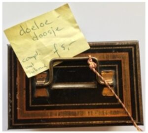 In 1994 kocht Gerard Beerman op een rommelmarkt in Zaandijk voor ƒ 5,00 een doosje waarop de koopman een briefje met ‘doeloedoosje’ had geplakt. Bij globale inspectie zag hij er een paar speldjes, opgerolde bankbiljetten (De Japansche Regeering betaalt aan toonder) en twee sigaartjes in liggen. Het waren duidelijk souvenirs van iemand die de Japanse bezetting van Nederlands-Indië en de periode daarna had meegemaakt. Verder lezen