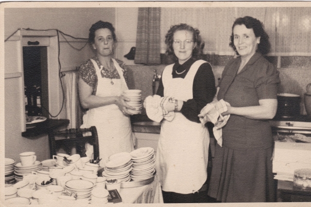 Dit is in het café van Jan Groot met een groot feest en dan hielp mijn moeder in de keuken afwassen. Met mevrouw Schoen en dan mevrouw Floris. Café Groot werd later Negrijn.