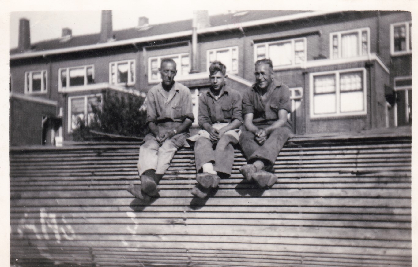 Dit is mijn vader bij houthandel Vet, de jongen van Takkenberg en Jaap de Boer die woonde op het Vissershop. Achter de achterkant van de huizen van de Hogendijk.
