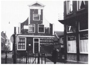 Aan de overkant kreeg je Vorst, dat was een zeemanskroeg en daar was wel eens wat aan de hand. Wij stiekem kijken en dan wisten onze moeders niet hoe snel ze ons daar moesten halen. Daarnaast zat eerst Buijs, de drankenwinkel. Dat liep naar beneden en dan werden de tonnen afgeleverd met paard en wagen en de tonnen rolden zo naar beneden. Dan Piet van Leeuwen, de Sparwinkel. Dan garage Starreveld. Daar heeft mijn vader als chauffeur gewerkt nadat hij bij Vet was weg gegaan. Nu wordt het wat vaag hoor want als kind kwam ik niet zover op de dijk.