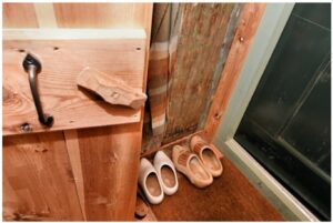 Sommige woningen hadden bij de achterdeur ook een klompenhokje aangebouwd. Op z’n Zaans gezegd een ‘klompenhossie’!