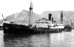 Links vrachtschip de ‘Nieuwe Maas’, rechtsr de nieuwe naam ‘Maiotis’.
